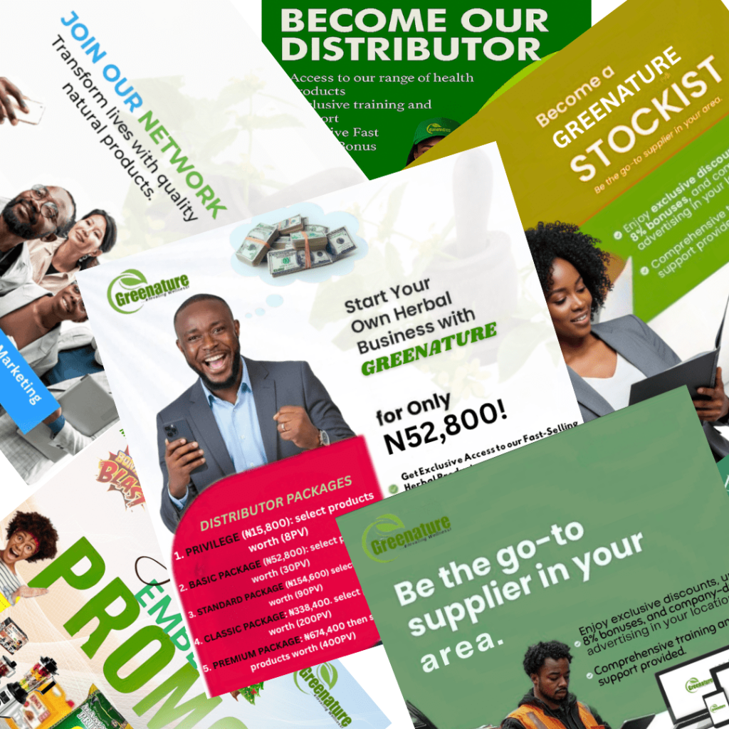An opportunity to make money for yourself and be financially freed. It comes with other bonuses.Your registration qualifies you to become a bonafide member and partner of GREENATURE INTERNATIONAL. You will be given a unique ID and access to our portal so you can access your performance on the go. Call/Whatsapp : +2347064848268 for details of joining our team of PIONEER DISTRIBUTORS.